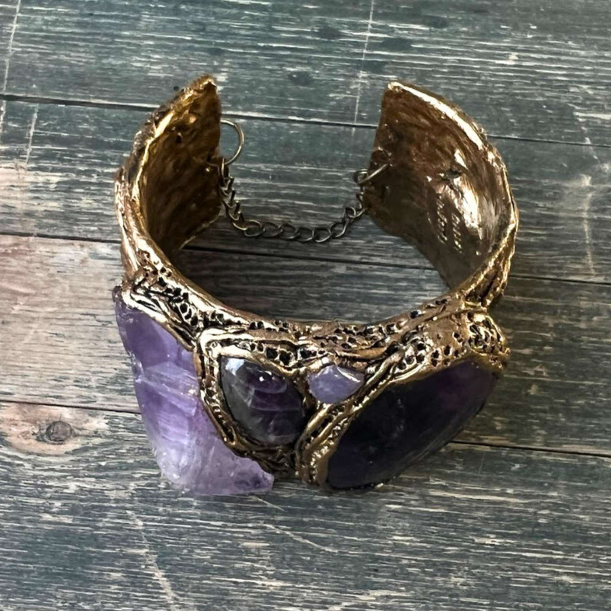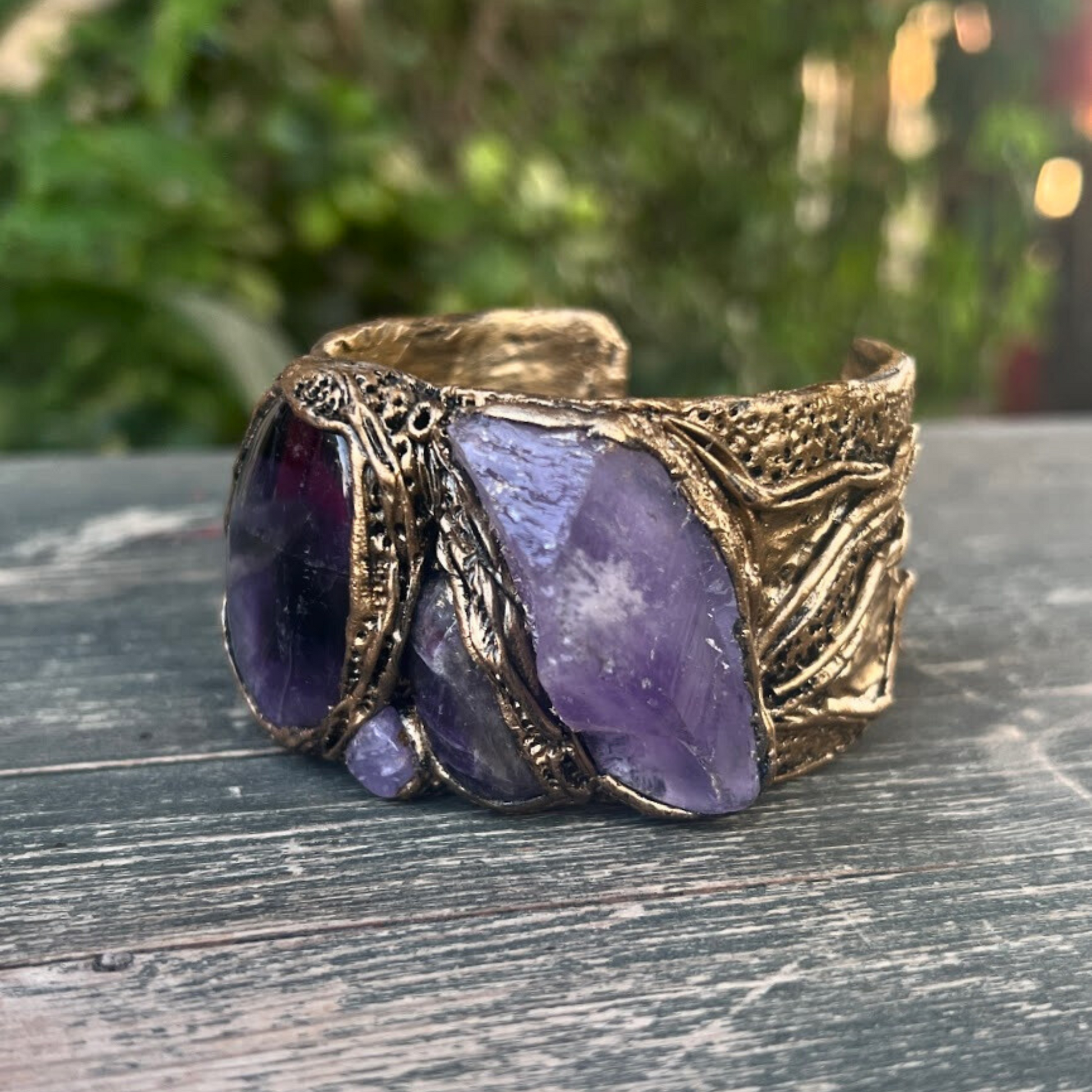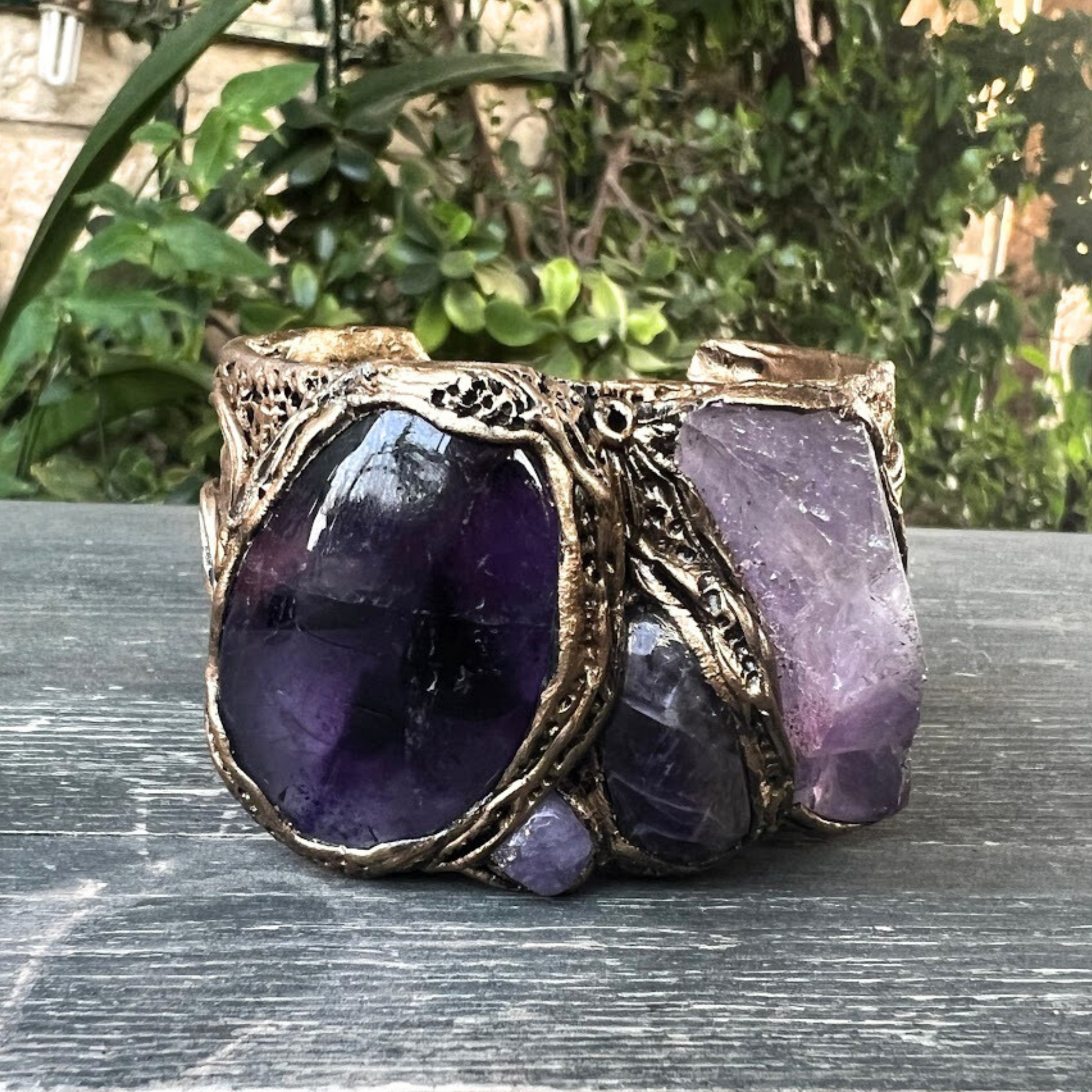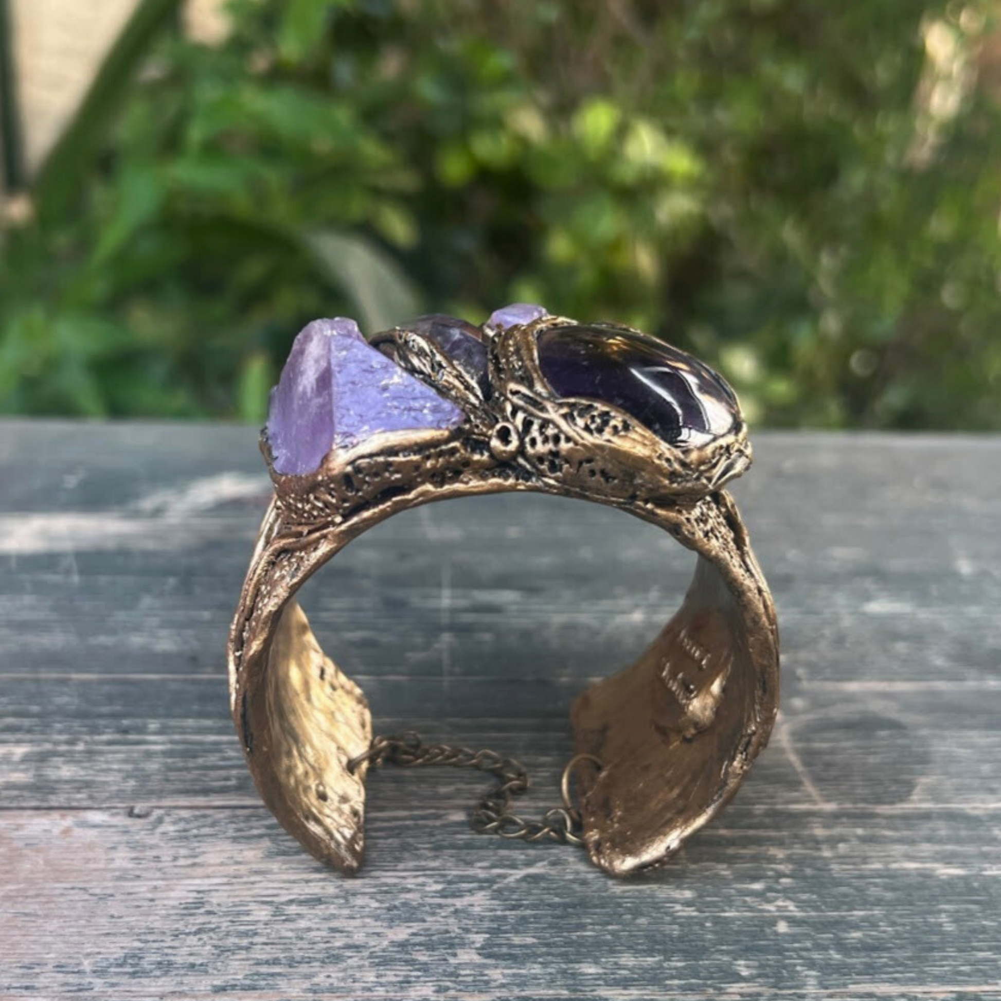 Amethyst Healing Crystal Cuff Bracelet, Boho Purple Raw Stone Bracelet