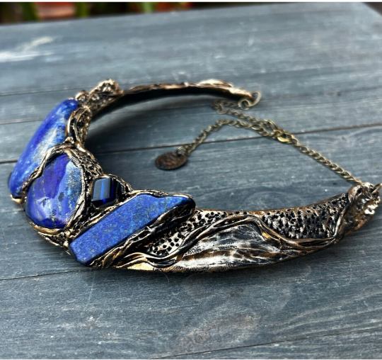 Materials: Lapis Lazuli, metal wide choker necklace, metal accessories, polymer clay