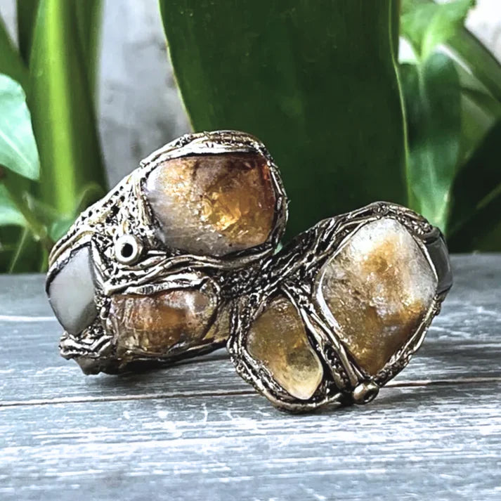 You can elevate your style with this Chunky Citrine Crystal Ring, a full-finger statement piece designed to radiate warmth and abundance. This handcrafted gemstone ring is a bold yet elegant accessory, perfect for those who seek prosperity and confidence.