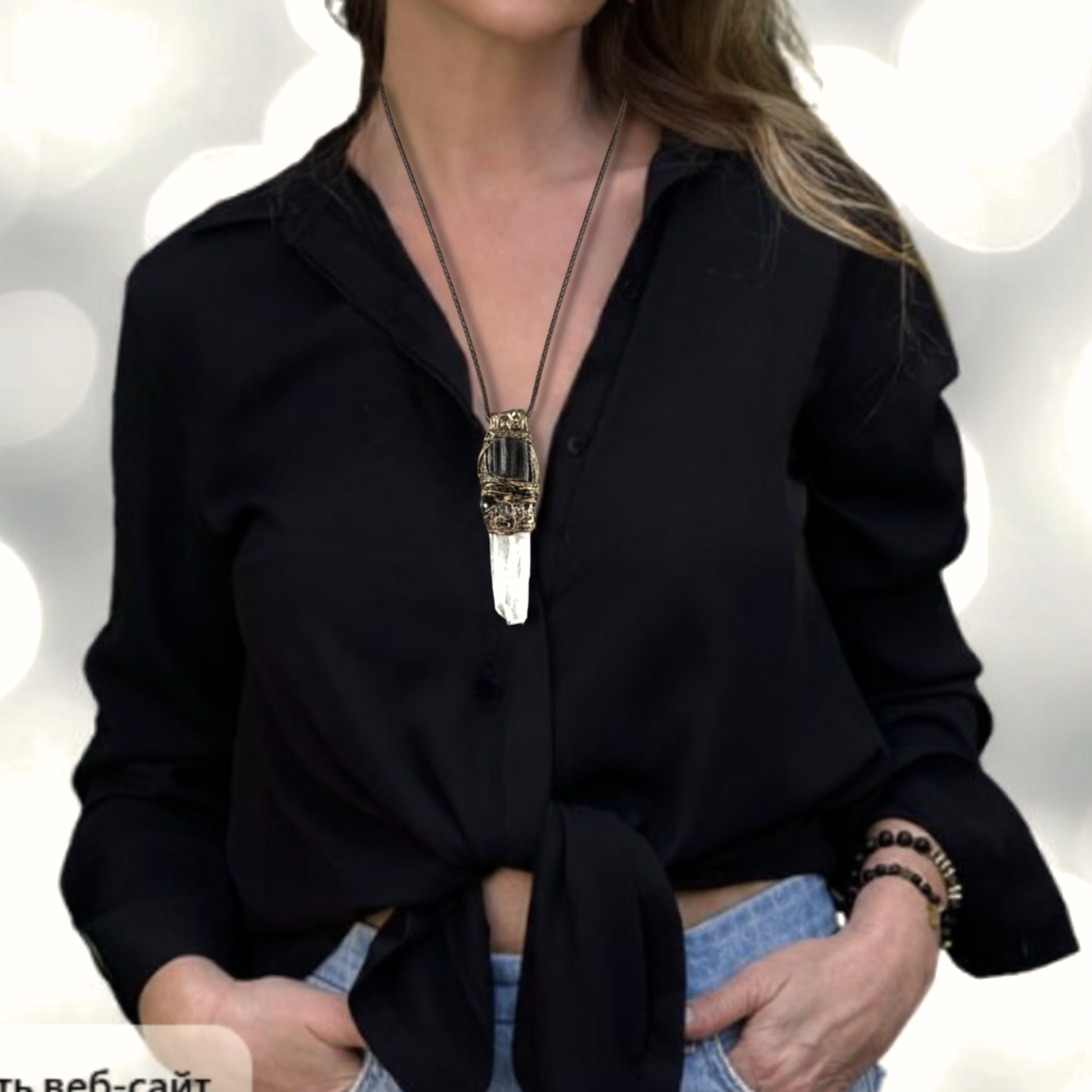 Empath Protection Necklace with Black Tourmaline, Calcite, and Amethyst – a powerful healing crystal pendant designed to shield sensitive souls. This unique gemstone necklace combines strong protection, cleansing, and calming energy, making it a perfect amulet for empaths and healers.