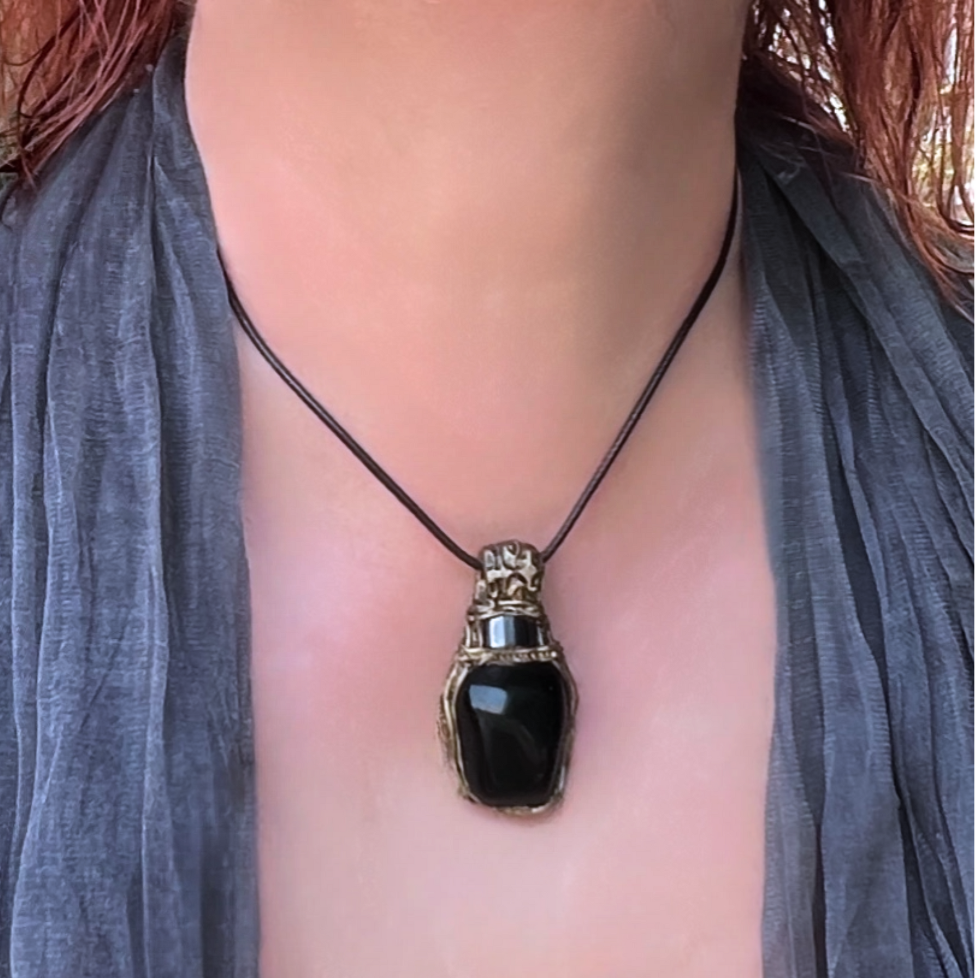 Black Obsidian & Hematite Pendant, Protection Crystal Amulet Necklace, Spiritual Jewelry Gifts