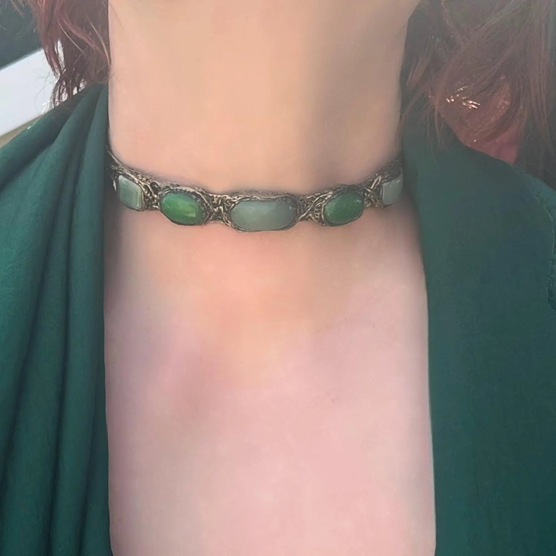 Green Aventurine & Jade Choker Necklace, Statement Crystal Jewelry