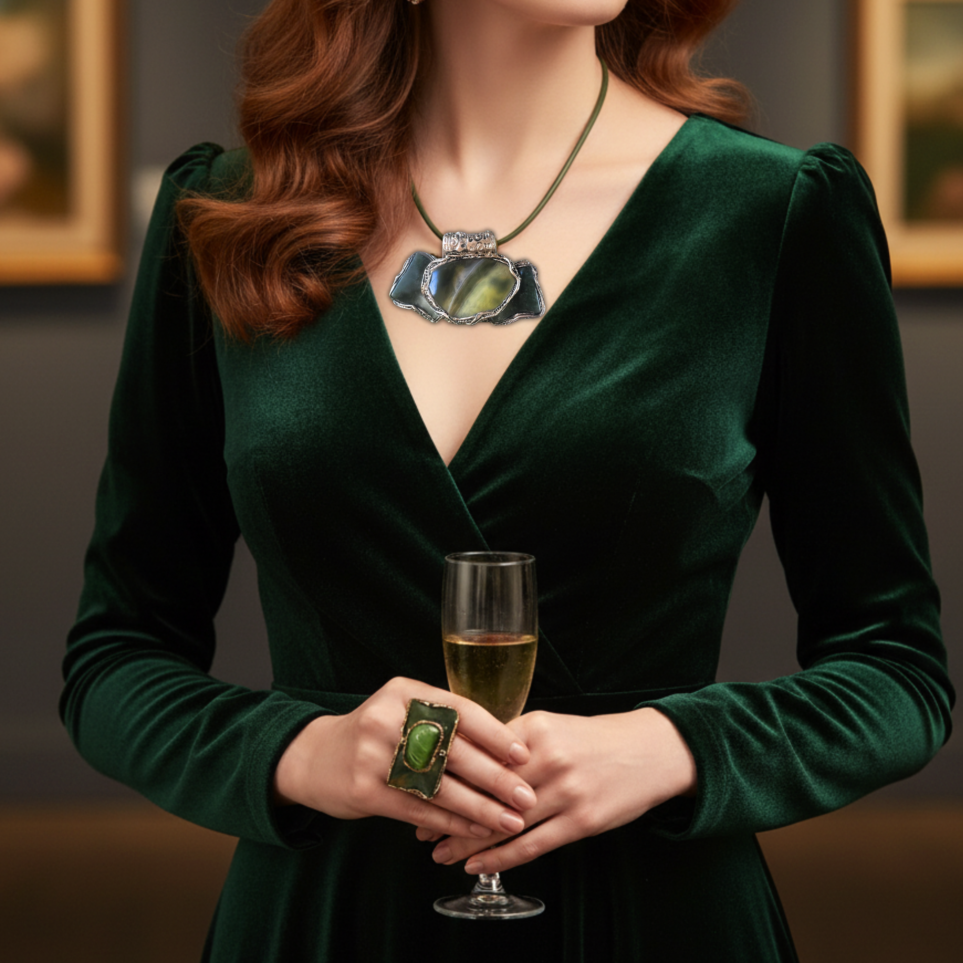 Chunky Swamp Green Agate & Jade Necklace – a bold statement gemstone jewelry piece handcrafted from earthy green Agate and soothing Jade. This oversized crystal necklace combines grounding and luck-enhancing properties in a unique design, perfect for those who appreciate powerful natural stone accessories.