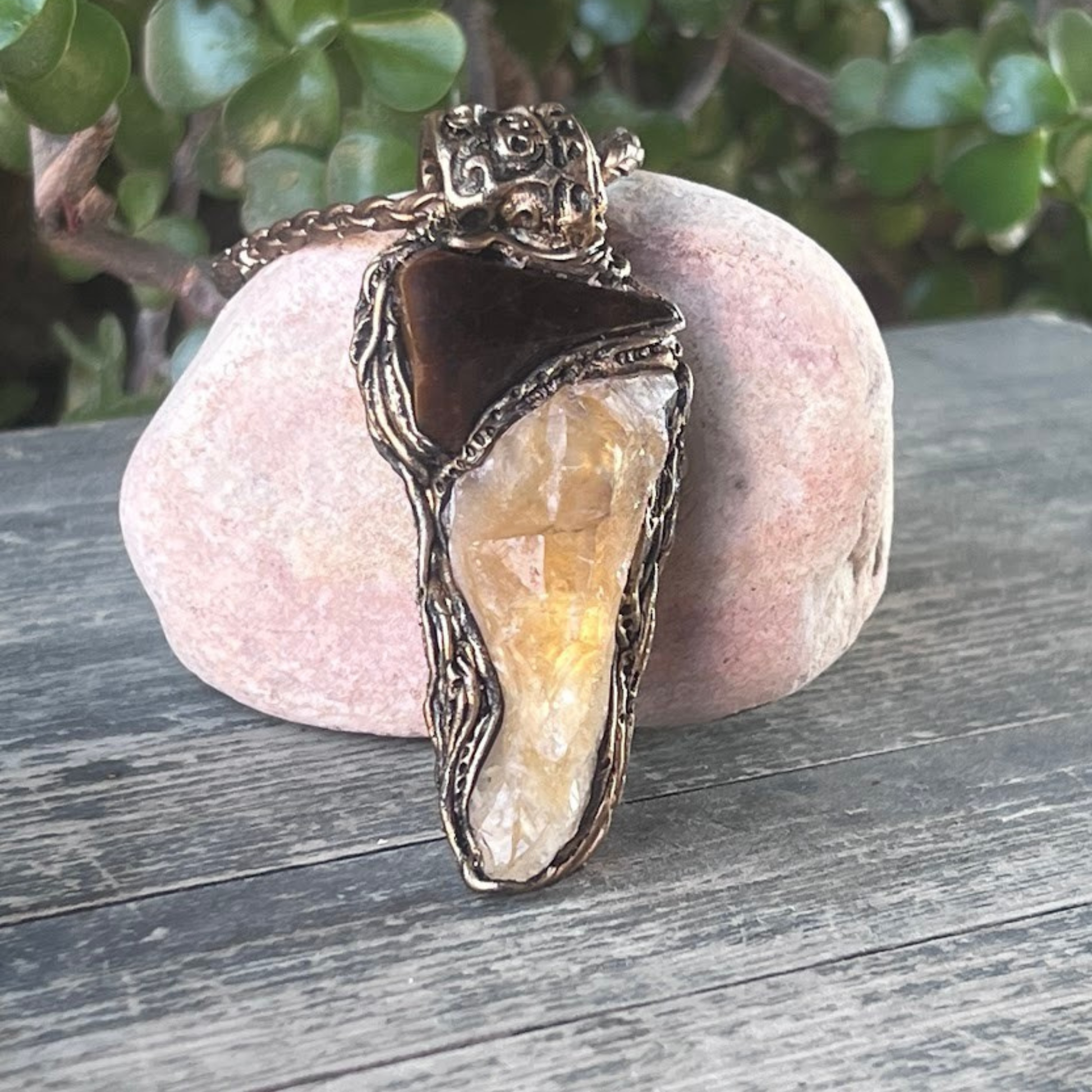Materials: Raw Brazilian Citrine, brass ring, polymer clay