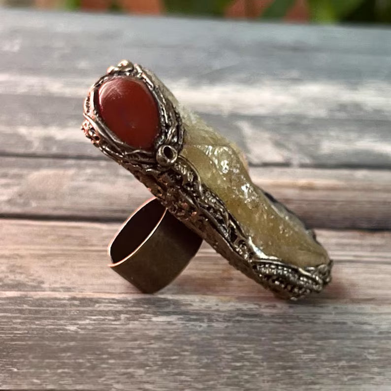 Large Statement Raw Citrine Ring, Chunky Gemstone Huge Ring
