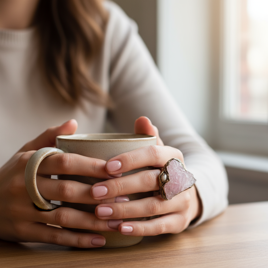 Raw Rose Quartz Crystal Chunky Ring symbolizes love, compassion, and timeless elegance.