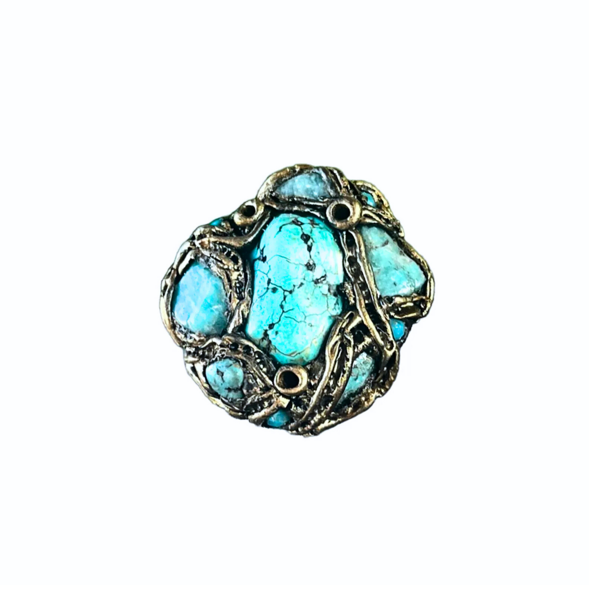 Materials: Turquoise, Amazonite, Howlite, brass ring, polymer clay.